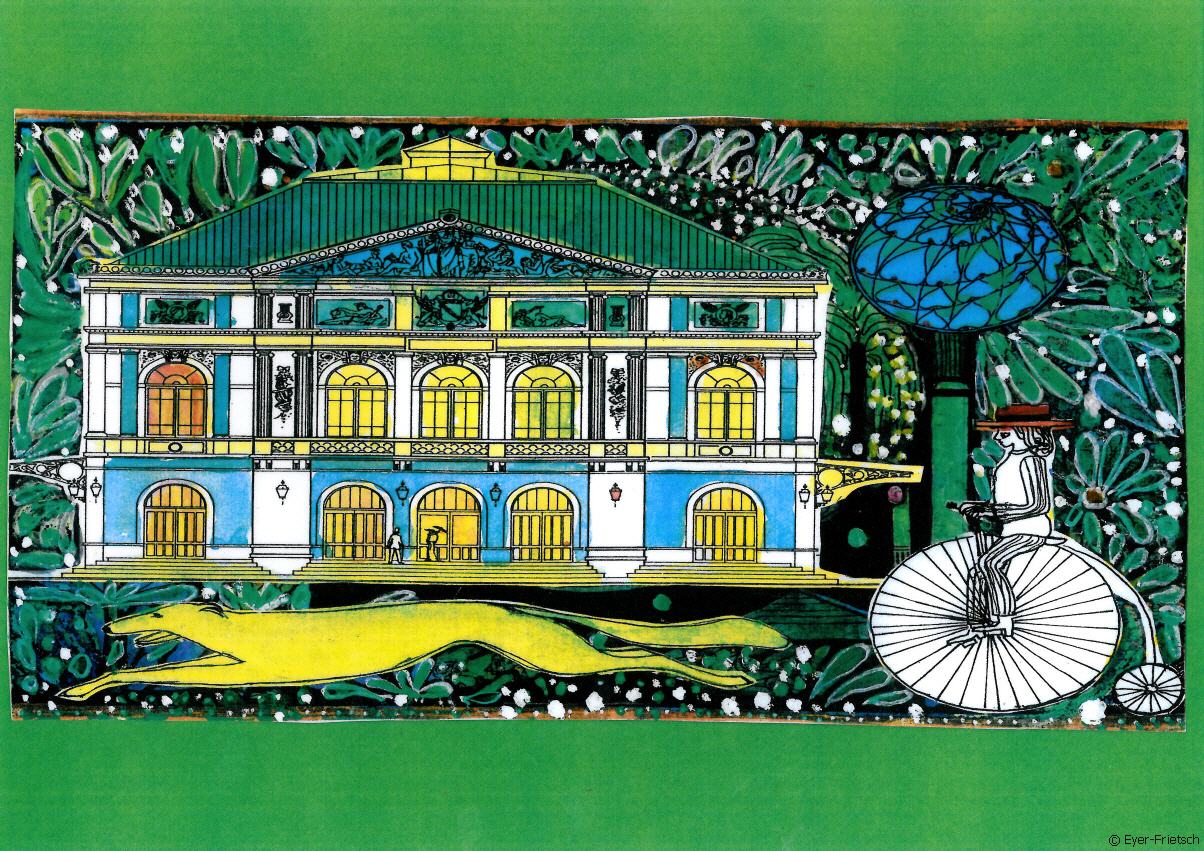 Das Theater wurde 1862 erbaut. Lebensfreude in der Lichtentaler Allee (mit Hund)