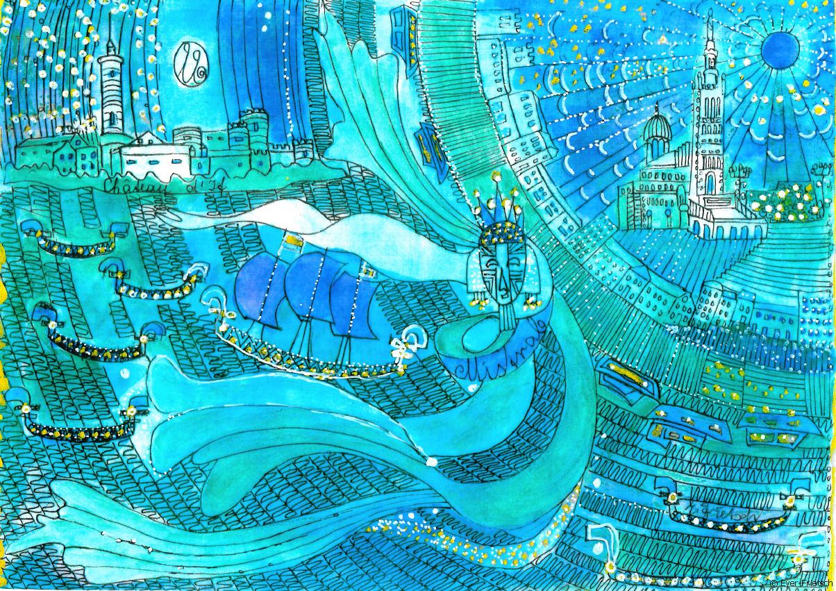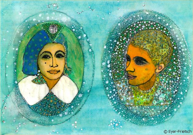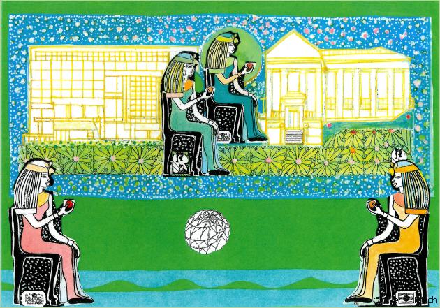 Wie kamen die Schönen vom Nil an die Oos. Auf der Suche eine geometrische Ordnung in meine Bilder zu bringen, wurde ich mit der Kunst der "Alten Ägypter" konfrontiert. Symbole, Attribute, Kreise, Senkrechte, Waagrechte, Abkehr vom Chaos. Das Abendland wurde von der Gedankenwelt der "Alten Ägypter" wesentlich geprägt - Inspiration.