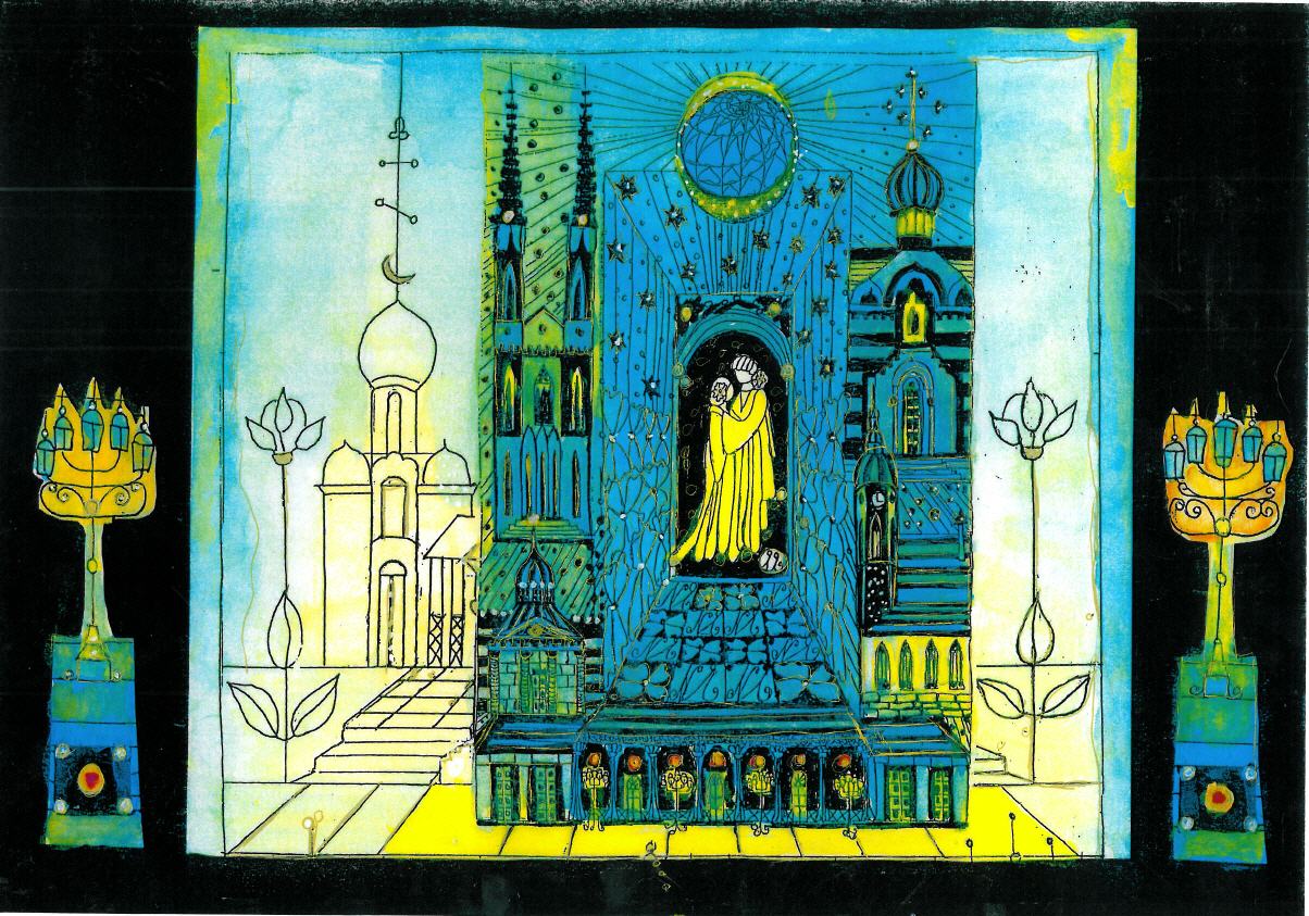 Tschaikowsky - Dornröschen - Schwanensee. Erinnerung an das Bühnenbild im Mariinsky-Theater mit Tschaikowsky-Portrait